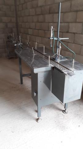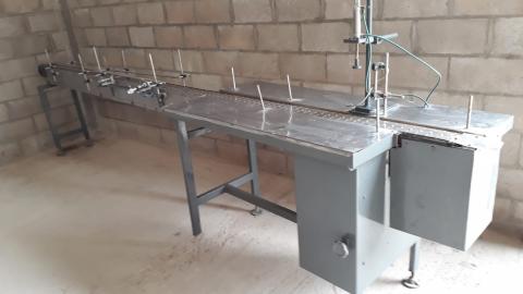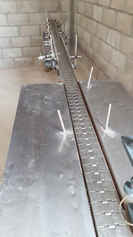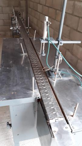 Disponibles Ref. N° 1113 Tenemos dos videos Cinta de transporte para botellas ó sifones Largo 4,40 metros ancho 10 cm está funcionando Tiene mesa de acumulación