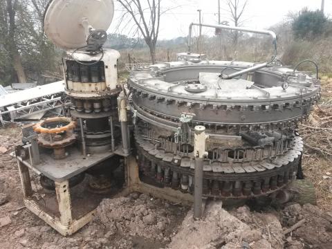 LLenadora rotativa para PET gasificado de 60 picos con roscador de 16 cabezas.